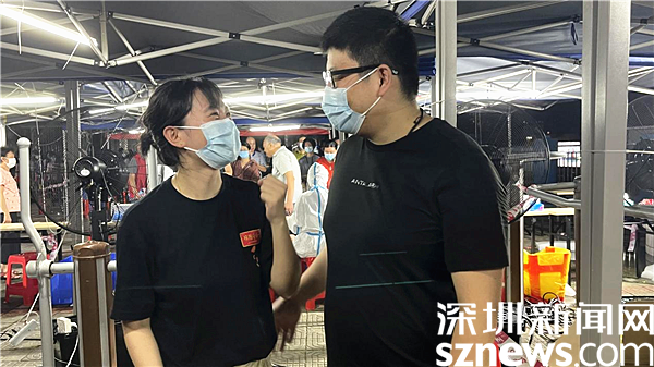 讀特客戶端·深圳新聞網(wǎng)2021年6月22日訊(記者 郭含笑)“我沒(méi)事,稍作休息就可以繼續(xù)投入工作了。”6月20日下午,在深圳市羅湖區(qū)東湖街道布心花園核酸檢測(cè)點(diǎn),羅湖區(qū)婦幼保健院兒童保健科康復(fù)治療師李忠麗在核酸檢測(cè)現(xiàn)場(chǎng)突發(fā)暈眩,隨即被扶至一旁休息,隨后由其丈夫羅湖區(qū)婦幼保健院兒童保健科康復(fù)治療師任雨替補(bǔ)上陣。