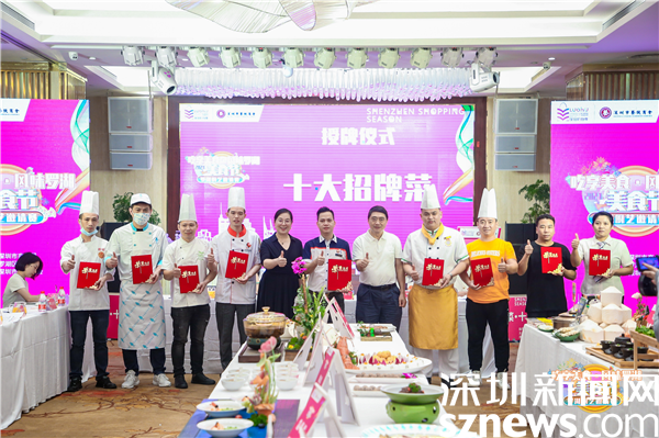 活動現(xiàn)場,外婆生煎蝦餅、海膽汁焗龍蝦、竹笙馬蹄椰子雞等42道色香味俱全的佳肴輪番上陣,廚師長各自介紹菜品特色和背后故事,加深活動群眾對中華飲食文化的了解。同時(shí),由行業(yè)資深專家組成的評審委員會對參賽作品的口味與質(zhì)感、工藝與火候、創(chuàng)意與實(shí)用、形態(tài)與色澤、營養(yǎng)衛(wèi)生安全等綜合評定打分,最終評選出羅湖十大招牌菜為外婆生煎蝦餅、竹笙馬蹄椰子雞、鴛鴦海中寶、黑胡椒焗波士頓龍蝦、膏蟹基圍蝦砂鍋粥、手工熟牛肉丸、六星燒腩骨、石斛活遼參湯、頭抽浸脆鯇魚、金戈戈香港豉油雞,十大特色菜為三叔烤羅蝦、有機(jī)青稞富貴石榴球、剁椒千島湖有機(jī)魚頭、荷塘蝦趣、蒙式烤羊排、小炒黃牛肉、菊花煲雞湯、潮泰金牌濕炒牛河、姚姚酸菜魚、招牌海南粉,十大名廚為林榮飄、梁文添、區(qū)增貴、杜明福、茍亞強(qiáng)、袁杰軍、劉品繁、張志平、陳煜保、杜保坡。