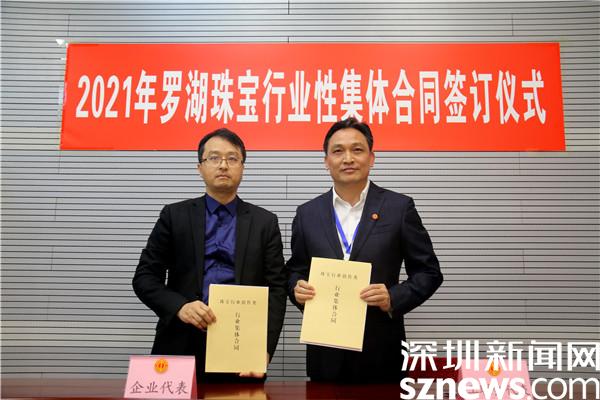 值得一提的是,本次大會還融合了職工權(quán)益保障、文明城市創(chuàng)建、企業(yè)服務等內(nèi)容。在大會現(xiàn)場,舉行了“2021年羅湖區(qū)珠寶行業(yè)集體合同簽訂儀式”。簽訂儀式上,區(qū)珠寶工聯(lián)會主席、集體協(xié)商首席代表曾志斌和羅湖區(qū)珠寶企業(yè)協(xié)商首席代表周曉航共同簽訂了《2021年羅湖區(qū)珠寶行業(yè)集體合同》,切實保障了轄區(qū)珠寶企業(yè)職工合法權(quán)益;隨后,由“廣東省五一勞動獎章”獲得者郭夷錟宣讀了主題為《攜手新征程,共創(chuàng)新未來》的行業(yè)倡議書,號召全區(qū)珠寶企業(yè)和職工,在深入學習貫徹習近平新時代中國特色社會主義思想、愛崗敬業(yè)、敢為人先、誠信經(jīng)營等方面爭做表率;同時,為更好地服務轄區(qū)企業(yè),大會特地邀請了羅湖區(qū)企業(yè)服務中心陳良同志為與會代表介紹企業(yè)服務平臺建設與運用情況。