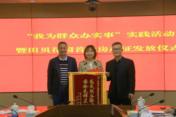 儀式當(dāng)天,5名村民代表從羅湖區(qū)領(lǐng)導(dǎo)的手中接過了房產(chǎn)證,田貝股份合作公司向有關(guān)單位贈(zèng)送錦旗表示感謝。