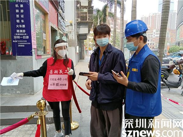1月9日,羅湖區(qū)開始第二輪全員核酸檢測,桂園街道老圍社區(qū)在禧程酒店、人民銀行門口、老圍花園五樓設立了三個臨時檢測點,社區(qū)工作人員和志愿者以及區(qū)里和街道的下沉人員身穿紅馬甲,在社區(qū)黨委的領導下,全力以赴,積極組織和引導市民快速有序地采樣離場。