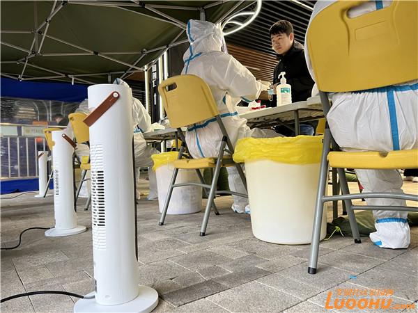 十分鐘后,物資配送車(chē)輛來(lái)到萬(wàn)科里核酸檢測(cè)點(diǎn),工作人員將熱乎乎的姜茶送到工作人員手中,并熟練地尋找合適的地方架起暖風(fēng)機(jī)。“從周末的暖寶寶,到今天的暖風(fēng)機(jī),暖心行動(dòng)一再升級(jí),感覺(jué)很驚喜?!绷_湖醫(yī)院護(hù)士劉新媚向記者說(shuō)道,目前疫情防控工作任務(wù)艱巨,檢測(cè)點(diǎn)周末也在連續(xù)運(yùn)轉(zhuǎn),但街道及時(shí)的物資保障,讓所有一線人員都感覺(jué)很暖心。