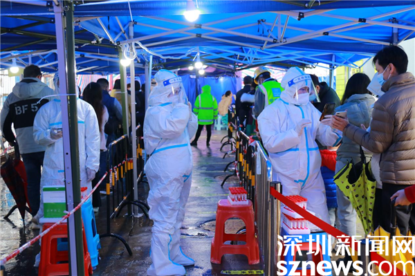 讀特客戶端·深圳新聞網(wǎng)2022年2月25日訊(記者 吳艷 通訊員 蔡歡 黃利生)連日來(lái)氣溫驟降,風(fēng)雨交加,然而在羅湖區(qū)東曉街道的大街小巷上,還有這樣一群人,他們身穿防護(hù)服,把守在各個(gè)路口和小區(qū)門(mén)口,查驗(yàn)居民“雙碼”;他們頂著風(fēng)雨,挨家挨戶上門(mén)動(dòng)員居民核酸檢測(cè);他們晝夜不停,打電話、核數(shù)據(jù),確保核酸檢測(cè)不漏一人;他們?cè)?、7度的寒冷天氣里堅(jiān)守核酸檢測(cè)點(diǎn),引導(dǎo)居民有序排隊(duì)檢測(cè)核酸。這些抗疫一線工作者,猶如一道道銅墻鐵壁,鑄起守衛(wèi)轄區(qū)群眾生命健康的安全防線。