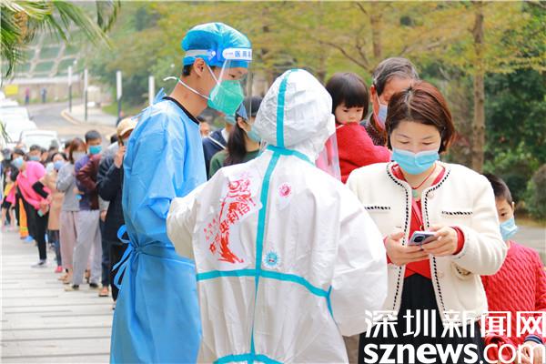 從2月17日開(kāi)始,劉曉勇加入安保公司,被派到羅湖區(qū)東曉街道支援疫情防控工作,至今已有13天,13天里,他跟隨隊(duì)伍轉(zhuǎn)遍了東曉街道各個(gè)核酸檢測(cè)點(diǎn),從分流人群、維持秩序,到掃碼、引導(dǎo)居民操作、核酸檢測(cè)點(diǎn)布置、采樣結(jié)束收尾……對(duì)每個(gè)流程都了如指掌;13天里,他每天工作十幾個(gè)小時(shí),從早上九點(diǎn)到晚上十點(diǎn)、十一點(diǎn),只在中午輪班吃飯的時(shí)候有十幾分鐘休息時(shí)間。