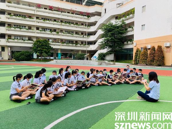 朗誦、聆聽、互動、分享、解讀......景貝小學各班級以“愛閱讀的孩子會發(fā)光”為主題開展親子共讀活動,教師們則圍繞共讀書目《真實的幸?!窌痴勑牡酶形?,閱讀的喜悅充盈于師生心間。在百仕達小學,小小讀書郎們手捧繪本《黎明開始的地方》,在藍天白云下,在簕杜鵑的芬芳里,一起齊聲朗讀,感受閱讀的魅力。
