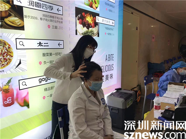 5月1日下午,老圍社區(qū)黨委書記許少瓊來到KKMALL商場負(fù)一樓的疫苗接種點(diǎn),看望現(xiàn)場的工作人員和醫(yī)務(wù)人員,檢查當(dāng)天的疫苗接種情況,并與工作人員一起動(dòng)員來往行人進(jìn)行加強(qiáng)針的接種。當(dāng)她聽說負(fù)責(zé)登記的醫(yī)生因?yàn)榱苡曛鴽龆^疼得厲害,卻還在默默堅(jiān)持時(shí),許少瓊立刻走到醫(yī)生的身后,為醫(yī)生按摩頭部。被按摩的醫(yī)生一再說,“很舒服,輕松了很多。”其實(shí),這一天,連續(xù)工作4個(gè)月無休的許少瓊,身體也不是很好,但她用堅(jiān)強(qiáng)的毅力壓抑了身體的不適,以一貫的積極樂觀影響帶動(dòng)著身邊的同事。