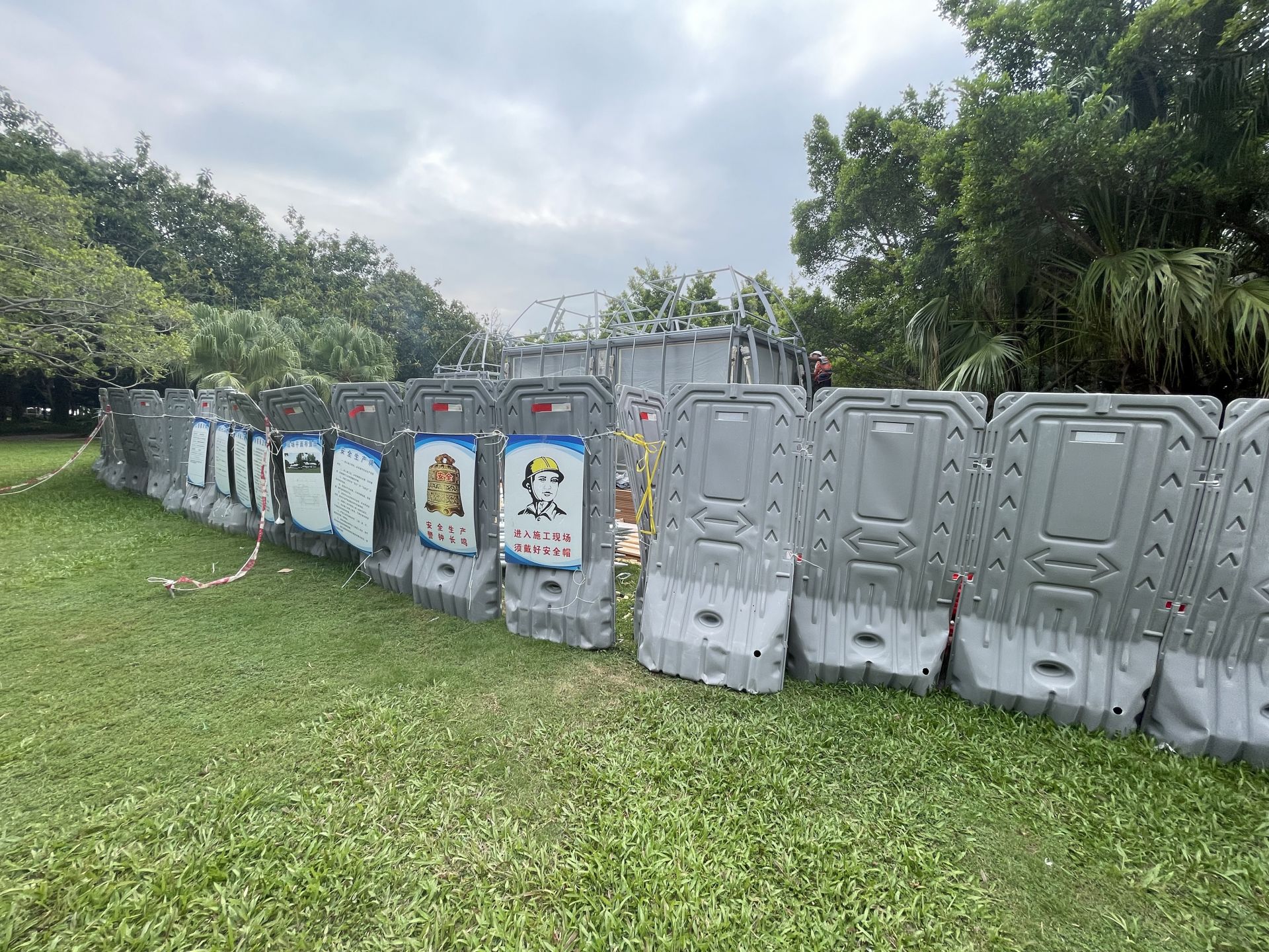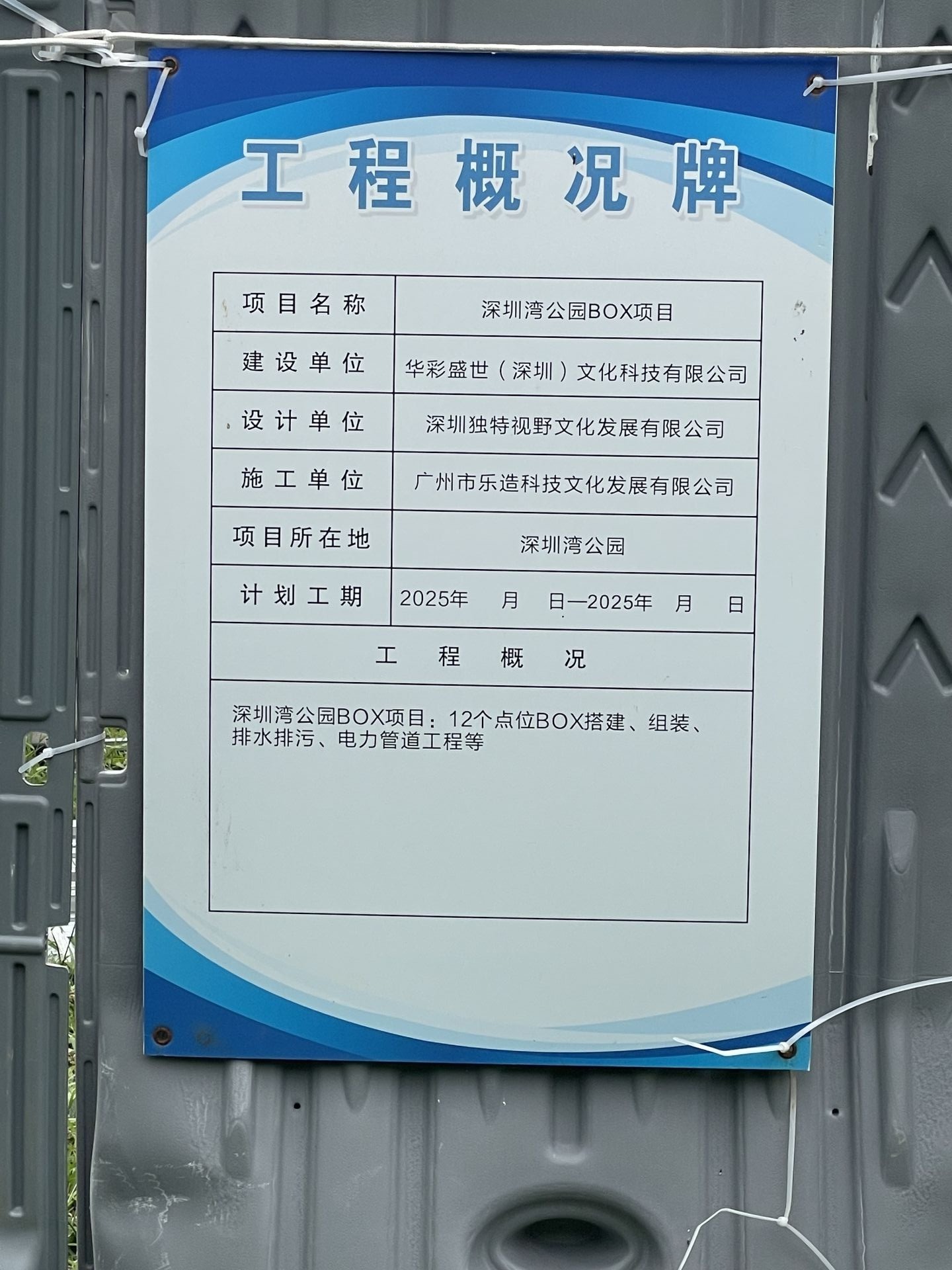 記者實地走訪發(fā)現(xiàn),報料情況屬實。在從公園內(nèi)“遷鳥書吧”至“海邊觀光”約1.3公里的步道范圍內(nèi),共有4處施工圍擋未明顯張貼規(guī)劃及施工許可證。所有施工均屬于“深圳灣公園BOX項目”,施工地點(diǎn)均為原公園草坪空地,建設(shè)單位為“華彩盛世(深圳)文化科技有限公司”,各施工圍擋由不同設(shè)計及施工單位負(fù)責(zé)。