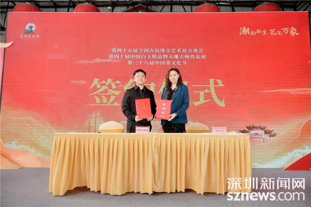 一直以來,深圳古玩城堅持走高質量發(fā)展之路,積極探索傳統(tǒng)文化的產業(yè)開發(fā)與文旅融合。現(xiàn)場,深圳古玩城與深圳市羅湖區(qū)旅游行業(yè)協(xié)會簽訂戰(zhàn)略合作協(xié)議,全新推出“一眼千年,玩味深圳”文旅體驗項目,讓更多海內外游客走進深圳古玩城這塊文化寶地,領略中國傳統(tǒng)文化的恒久魅力,實現(xiàn)“以旅彰文,以文促旅”的完美融合?!耙粫徽挂还?jié)”活動期間,首個文化體驗團將抵達深圳古玩城,親身感受多彩非遺與傳統(tǒng)文化之美,希望能給他們留下難忘的回憶。