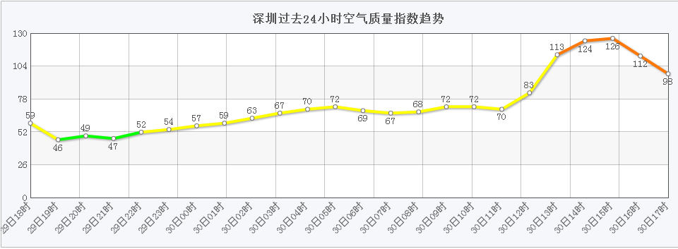 PM2.5監(jiān)測網(wǎng)數(shù)據(jù):深圳空氣指數(shù)全天最差的時段是下午三點。