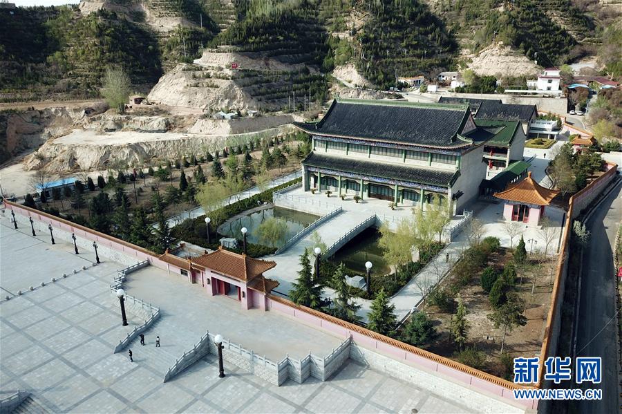 這是在蘭州黃河北岸拍攝的甘肅省圖書館文溯閣《四庫(kù)全書》藏書館全景(4月22日無人機(jī)拍攝)。