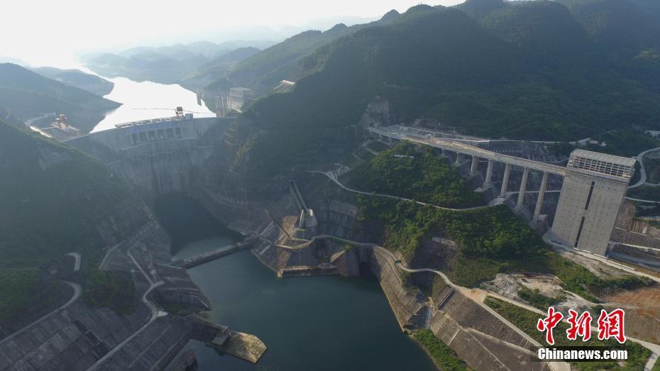6月5日,貴州省烏江構(gòu)皮灘水電站通航工程建設(shè)已接近尾聲。第一級升船機主提升系統(tǒng)設(shè)備調(diào)試工作啟動,第二級升船機主提升系統(tǒng)設(shè)備基本安裝完成,第三級升船機主提升設(shè)備完成80%安裝工作。構(gòu)皮灘水電站通航工程設(shè)計標準為通航500噸級船舶,最高通航水頭199m,是目前世界上通航水頭和提升高度最高、主提升設(shè)備規(guī)模最大的通航工程。其通航設(shè)施建成后,可將黔中物資從貴州遵義縣的烏江渡直達重慶市的涪陵入長江。圖為航拍構(gòu)皮灘水電站通航工程。中新社發(fā)瞿宏倫 攝