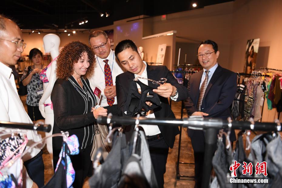 當?shù)貢r間7月17日,深圳市內衣行業(yè)協(xié)會在中美國際(美東)創(chuàng)業(yè)港——默特爾比奇市Waccoma Center舉行深圳內衣產業(yè)推介會暨深圳內衣美國展銷中心揭牌儀式。中美國際(美東)創(chuàng)業(yè)港聯(lián)合深圳市內衣行業(yè)協(xié)會為深圳內衣品牌進駐美東市場搭建綠色通道和產業(yè)孵化平臺,采用“時尚秀+靜態(tài)展”的形式,促進中美內衣文化和時尚的交流。圖為默特爾比奇市市長布蘭達Brenda Bethune女士參觀深圳內衣展廳。 中新社記者 陳文 攝