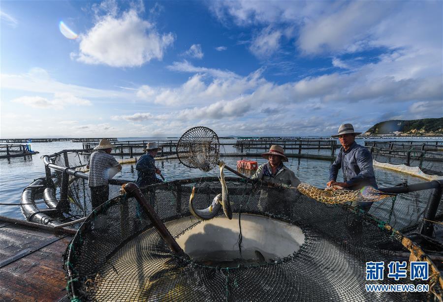 8月18日,南麂島海域內(nèi)的“海上牧場(chǎng)”養(yǎng)殖區(qū)內(nèi),漁民正捕撈大黃魚,處于仿生養(yǎng)殖環(huán)境的大黃魚需要生長(zhǎng)2至3年。進(jìn)入8月,浙江省溫州市平陽縣南麂鎮(zhèn)海域上大片的大黃魚、貽貝等特色海產(chǎn)品養(yǎng)殖區(qū)域迎來豐收季節(jié),養(yǎng)殖戶們駕駛漁船在養(yǎng)殖區(qū)海域進(jìn)行打撈收獲,在碧海藍(lán)天下構(gòu)成了一幅“海上牧場(chǎng)”的美麗豐收景象。近年來,南麂鎮(zhèn)政府引導(dǎo)漁民養(yǎng)殖戶充分發(fā)揮“靠海吃海”的資源優(yōu)勢(shì),大力發(fā)展海洋養(yǎng)殖經(jīng)濟(jì)和海島旅游經(jīng)濟(jì),實(shí)現(xiàn)了南麂由“生態(tài)美”向“產(chǎn)業(yè)美”,“產(chǎn)業(yè)美”向“經(jīng)濟(jì)美”的轉(zhuǎn)變。同時(shí)該鎮(zhèn)堅(jiān)持以大黃魚、貽貝等為特色產(chǎn)業(yè)支撐,精準(zhǔn)發(fā)展高效海洋養(yǎng)殖業(yè),重點(diǎn)培養(yǎng)一批新型職業(yè)漁民,依靠專業(yè)技術(shù)支持,實(shí)現(xiàn)深海仿生養(yǎng)殖,讓好生態(tài)造就好品質(zhì),重點(diǎn)打造南麂養(yǎng)殖品牌,組建營(yíng)銷網(wǎng)絡(luò),拓展特色海產(chǎn)品市場(chǎng)。新華社記者 徐昱攝