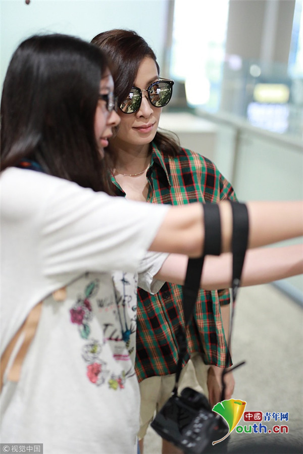 2018年9月9日,“嫻妃”佘詩曼從上海機(jī)場飛往北京機(jī)場,她擺“剪刀腿”大方任拍,身穿格紋襯搭配衫燈籠褲,時(shí)髦青春衣品超贊!