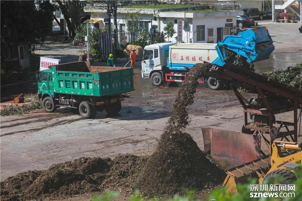據(jù)了解,9月15日臺(tái)風(fēng)到來前,組織運(yùn)營單位深圳鐵漢生態(tài)公司對全場車間及工人宿舍進(jìn)行加固,機(jī)器設(shè)備進(jìn)行維護(hù)保養(yǎng),騰出場地準(zhǔn)備接收被臺(tái)風(fēng)刮斷送來的樹枝。16日臺(tái)風(fēng)來時(shí),敞開大門接收樹枝,用LED廣告牌發(fā)布通知,優(yōu)先接收綠化處管養(yǎng)的深南、北環(huán)、濱河、濱海、南坪快速等主干道樹枝。