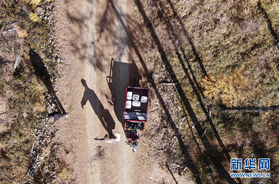 9月18日,在內(nèi)蒙古大興安嶺根河林業(yè)局約安里林場(chǎng),林場(chǎng)職工為馴鹿養(yǎng)殖基地運(yùn)送給養(yǎng)。新華社記者于洋攝