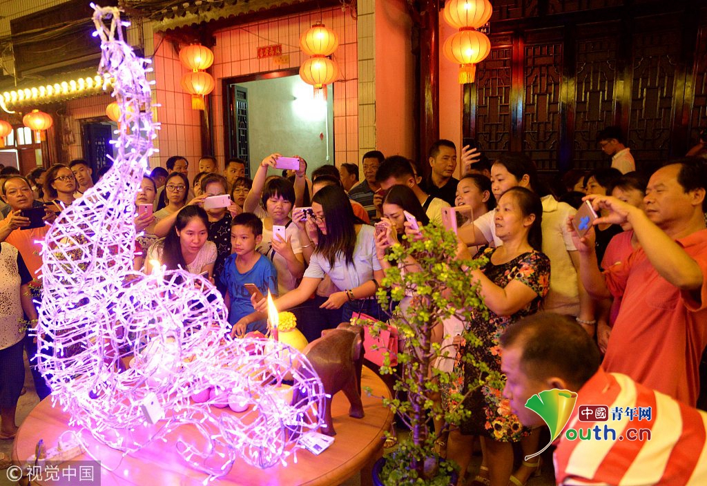 2016年9月15日晚,廣西來賓市忻城縣城關(guān)鎮(zhèn)城廂街舉行中秋節(jié)供月扎彩燈(走馬燈)民俗活動(dòng),5萬余名區(qū)內(nèi)外游客涌入老街,體驗(yàn)獨(dú)特的文化魅力和民俗風(fēng)情,人們在老街內(nèi)賞月、賞花燈、品美食、拍照,流連忘返。