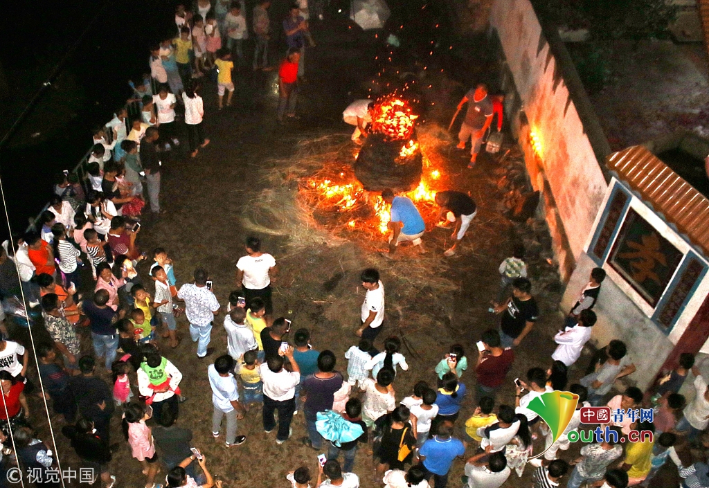 江西省進(jìn)賢縣西湖李村燒圣塔喜迎中秋節(jié)。燒圣塔是當(dāng)?shù)貜墓胖两裱永m(xù)下來的中秋習(xí)俗。