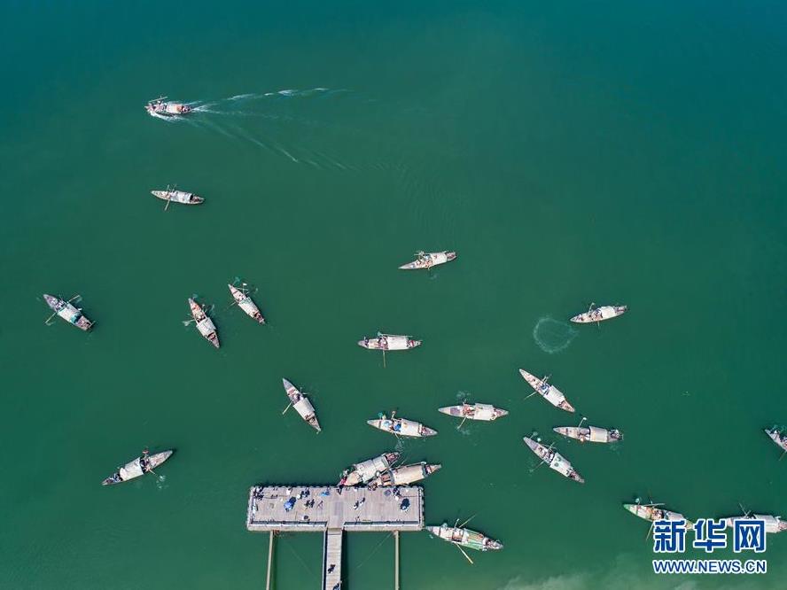 9月18日,漁民們乘坐漁船在富春江里捕撈江鮮(無人機(jī)拍攝)。 當(dāng)日,浙江省杭州市富陽區(qū)場口鎮(zhèn)東梓關(guān)村開啟“江鮮大會(huì)”,數(shù)十艘小漁船一起駛向富春江江面,拉開了秋分節(jié)氣前捕撈江鮮的序幕。 東梓關(guān)村有著1000多年歷史,水陸交通方便,自古就是富春江南岸重要的商貿(mào)集散地,素有富春江“東流第一關(guān)”之稱。隨著近年來美麗鄉(xiāng)村建設(shè)的推進(jìn),東梓關(guān)村著力打造白墻黛瓦的江南民居,同時(shí)依托富春江豐富的江鮮魚類資源,在秋季舉辦特色“江鮮大會(huì)”,通過舉辦江鮮捕撈體驗(yàn)、江鮮第一鍋開鍋、百鮮宴、鄉(xiāng)村小型音樂會(huì)、農(nóng)家菜大賽等活動(dòng),吸引各地游客前來感受富春江漁民豐收的喜悅和江南千年古村的獨(dú)特魅力,推動(dòng)鄉(xiāng)村特色旅游發(fā)展。 新華社記者徐昱攝