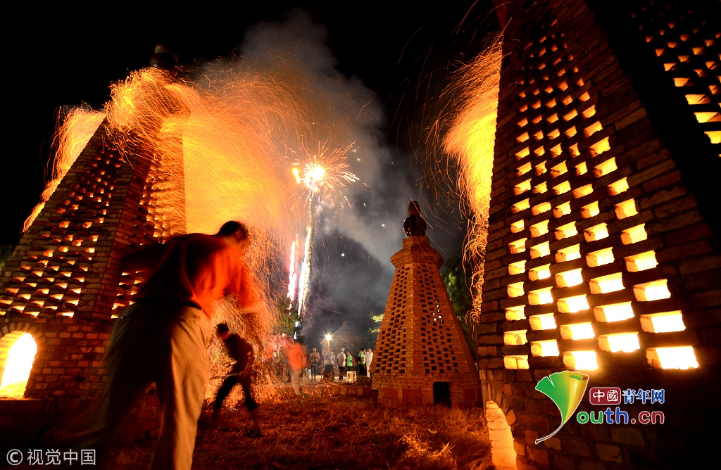 江西省進(jìn)賢縣西湖李村燒圣塔喜迎中秋節(jié)。燒圣塔是當(dāng)?shù)貜墓胖两裱永m(xù)下來(lái)的中秋習(xí)俗。