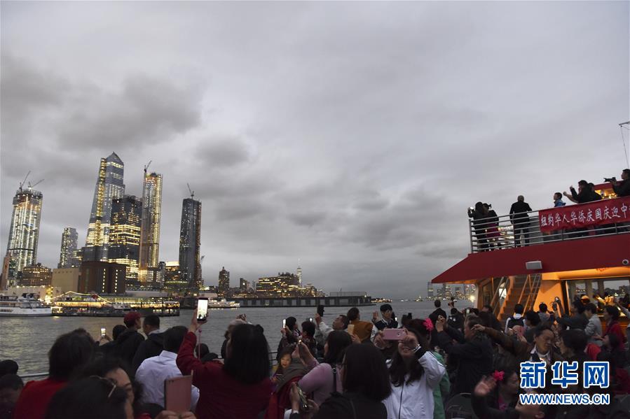 9月23日,在美國紐約,人們參加游船賞月活動。 23日晚,紐約華人社團(tuán)聯(lián)合總會等20多個(gè)僑團(tuán)聯(lián)合主辦哈得孫河游船賞月活動。游船從哈得孫河到東河,途經(jīng)炮臺公園、自由女神像、華爾街金融區(qū)、聯(lián)合國大樓等著名景點(diǎn)。 新華社記者韓芳攝