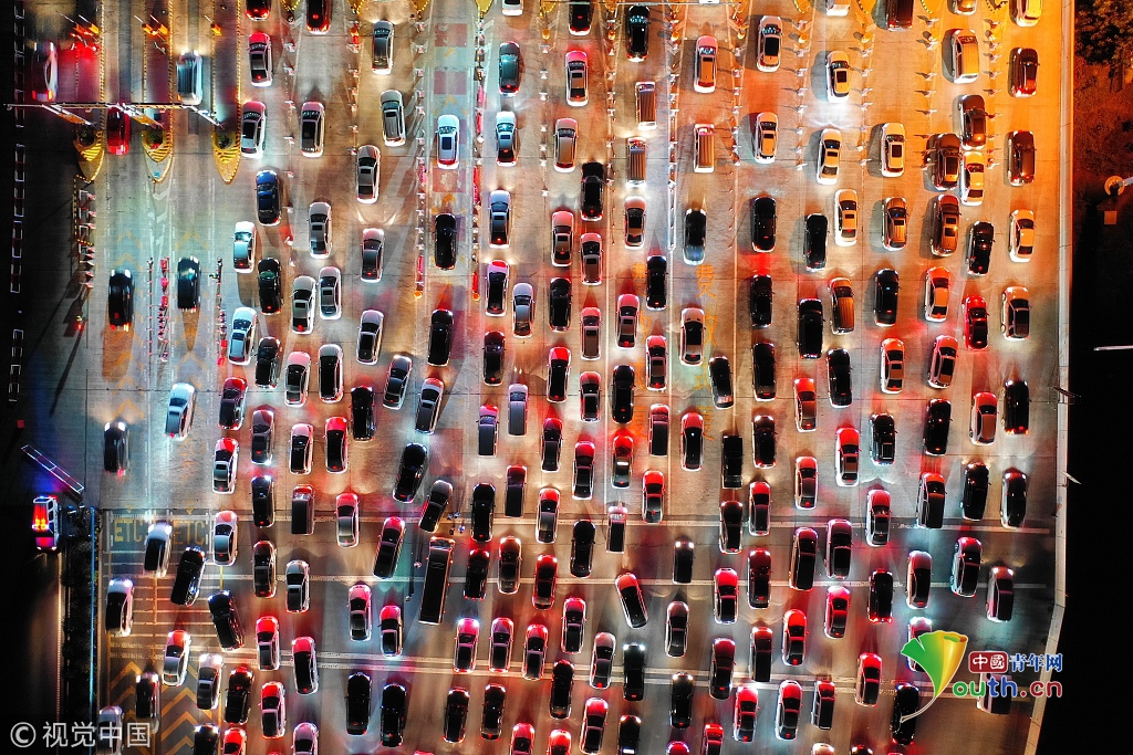 航拍鄭州中秋返程高峰 堵車數(shù)公里宛如“巨龍”