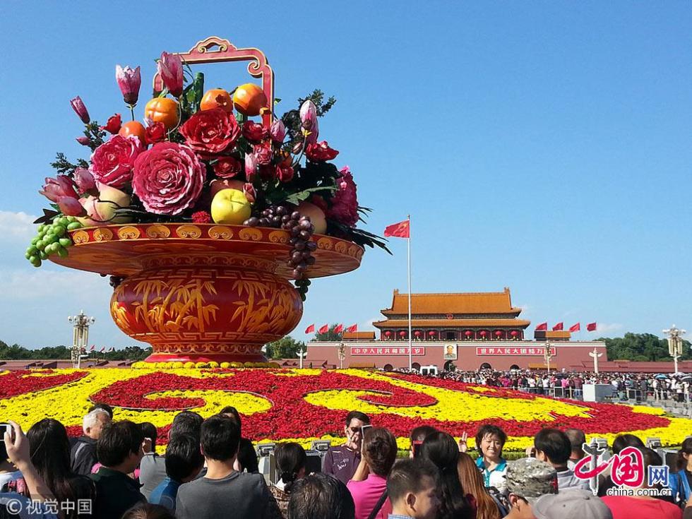 9月23日在北京天安門廣場拍攝的“祝福祖國” 巨型花籃。