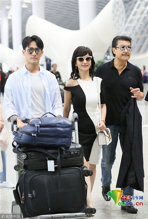 2018年9月25日晚,深圳,剛參加完央視秋晚的趙雅芝攜老公黃錦燊及兒子黃愷杰抵達深圳寶安機場,超高顏值的一家人所致之處頻頻引起側(cè)目,其子黃愷杰自推行李車,俊朗的外形引起粉絲一路跟拍,相當(dāng)拉風(fēng)!