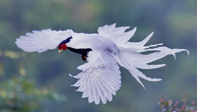 9月27日,一只白鷴在南靖縣鵝仙洞自然保護區(qū)飛翔。