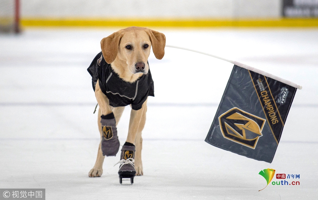 2018年9月26日訊。(具體拍攝時(shí)間不詳)這只可愛的拉布拉多犬本尼是世界上第一只會(huì)滑冰的狗。