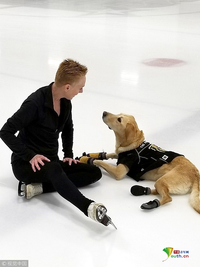 如今五歲的本尼學習滑冰已有一年,每周兩次在拉斯維加斯冰上中心接受主人的訓練,學習一系列包括轉(zhuǎn)彎、交叉、兔子跳等動作技巧。