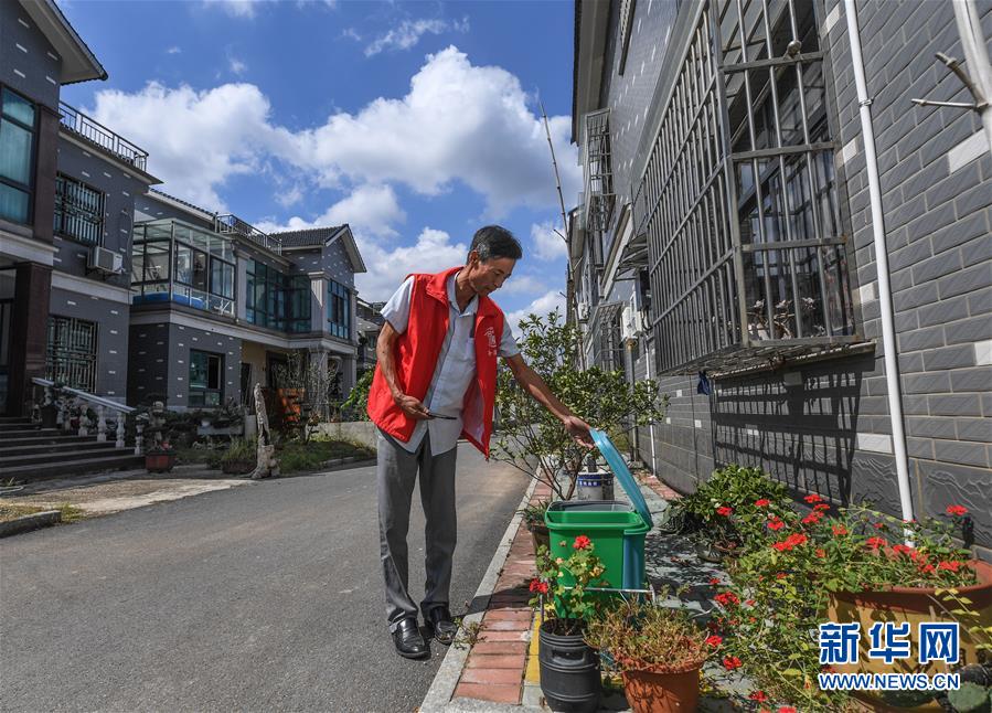 9月27日,小浦鎮(zhèn)合溪村垃圾分類督察員黃秋華在進(jìn)行垃圾分類巡查,并用APP進(jìn)行登記。從9月初開始,浙江省長(zhǎng)興縣小浦鎮(zhèn)推廣使用手機(jī)垃圾分類智能管理平臺(tái)。通過(guò)這款A(yù)PP可以進(jìn)行村民垃圾分類情況打分、清運(yùn)員每日簽到、監(jiān)督員巡查等,并能即時(shí)生成農(nóng)戶垃圾分類“成績(jī)單”,所有農(nóng)戶均可通過(guò)APP查詢垃圾分類排行榜,既方便又環(huán)保。新華社記者 徐昱 攝