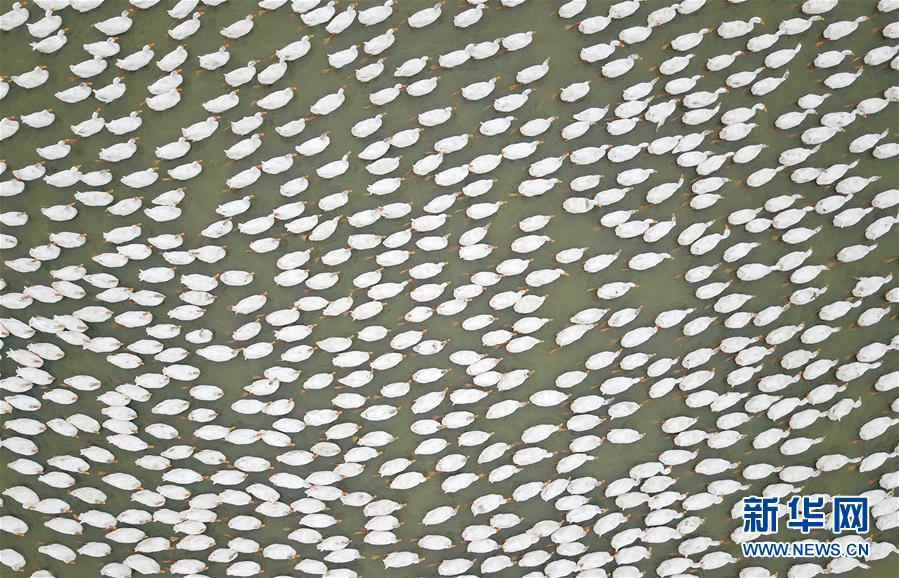 這是小崗村一處養(yǎng)殖鴨子的水塘(9月16日無(wú)人機(jī)拍攝)。 新華社記者 才揚(yáng)攝