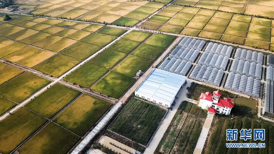 這是北大荒集團(tuán)在小崗村建立的現(xiàn)代化水稻生產(chǎn)基地(9月27日無(wú)人機(jī)拍攝)。 新華社記者 張端攝