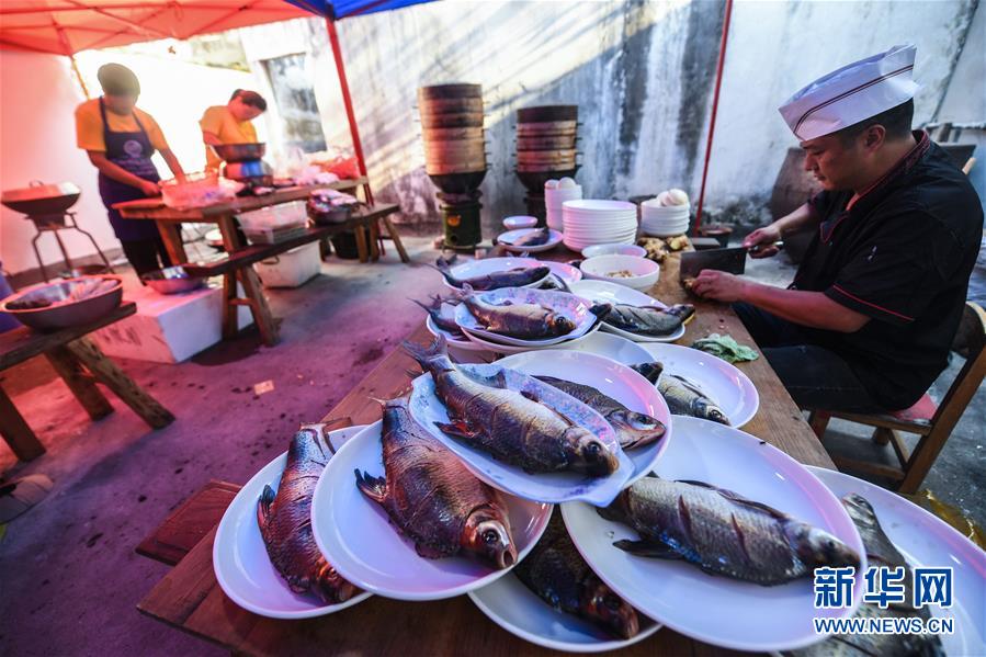 9月30日,工作人員在準備江鮮宴席。當日,浙江省杭州市富陽區(qū)場口鎮(zhèn)東梓關村開啟“江鮮第一鍋”,幾位大廚聯(lián)手在直徑1.5米的大鍋內烹制美味江鮮,這也是當?shù)亍敖r大會”的重頭戲。東梓關村有著1000多年歷史,古就是富春江南岸重要的商貿集散地,素有富春江“東流第一關”之稱。隨著近年來美麗鄉(xiāng)村建設的推進,東梓關村著力打造粉墻黛瓦的江南民居,同時依托富春江豐富的江鮮魚類資源,在秋季舉辦特色“江鮮大會”,通過江鮮捕撈體驗、江鮮第一鍋、百鮮宴、農家菜大賽等活動,吸引各地游客前來感受富春江漁民豐收的喜悅和千年古村的獨特魅力,推動鄉(xiāng)村特色旅游發(fā)展。新華社記者徐昱攝