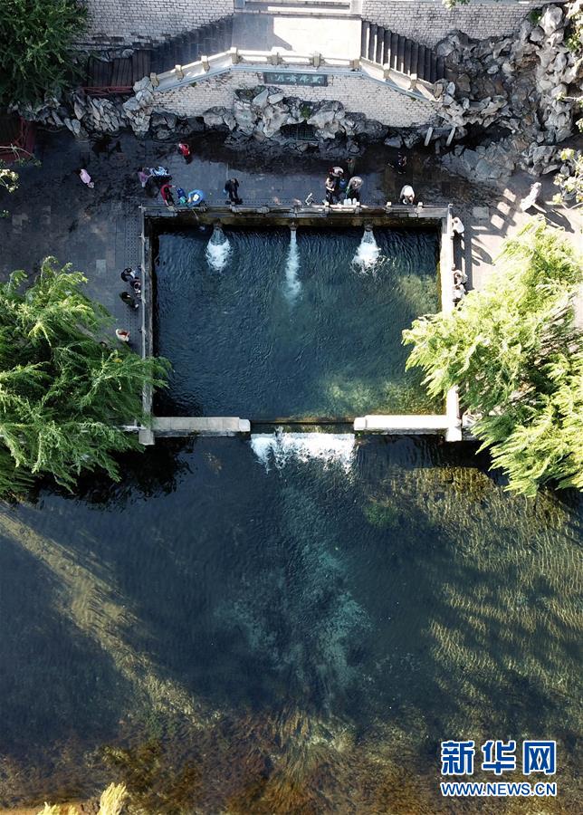9月30日,游客在免費開放的濟南市黑虎泉游覽(無人機拍攝)。近年來,山東積極推進國有景區(qū)免費開放工作,截至目前,山東實現(xiàn)免費開放的國有景區(qū)已達286處。新華社記者徐速繪攝