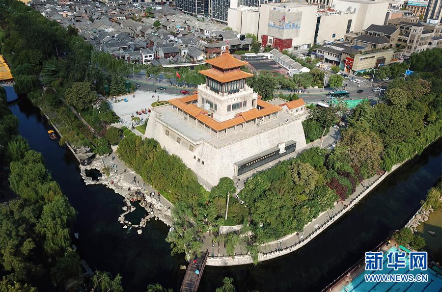 這是免費開放的濟南市解放閣景區(qū)(9月30日無人機拍攝)。近年來,山東積極推進國有景區(qū)免費開放工作,截至目前,山東實現(xiàn)免費開放的國有景區(qū)已達286處。新華社記者徐速繪攝