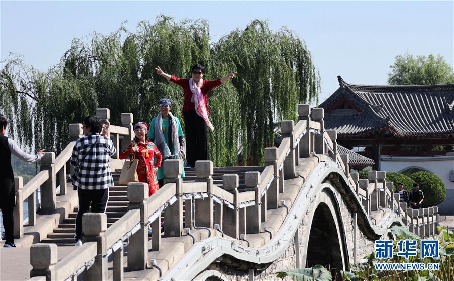 9月30日,游客在免費開放的濟南市大明湖景區(qū)游覽。近年來,山東積極推進國有景區(qū)免費開放工作,截至目前,山東實現(xiàn)免費開放的國有景區(qū)已達286處。新華社記者徐速繪攝