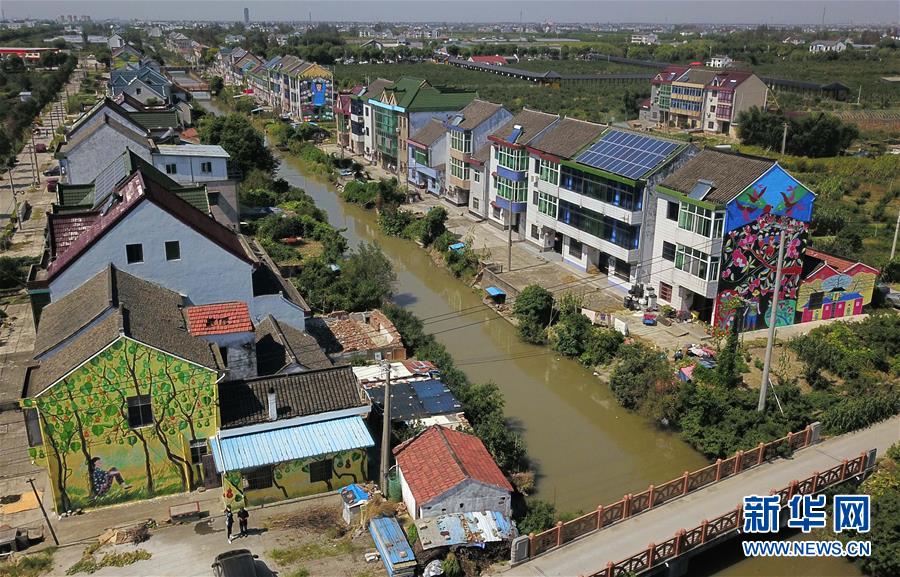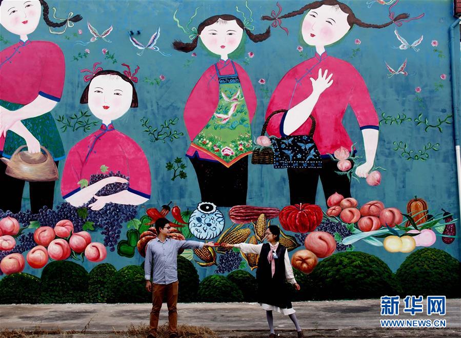 在上海市金山區(qū)呂巷鎮(zhèn)和平村,村民房屋的墻壁上繪制了色彩艷麗、風(fēng)格各異的壁畫(huà),展現(xiàn)田園生活景象,吸引不少游人來(lái)此參觀。