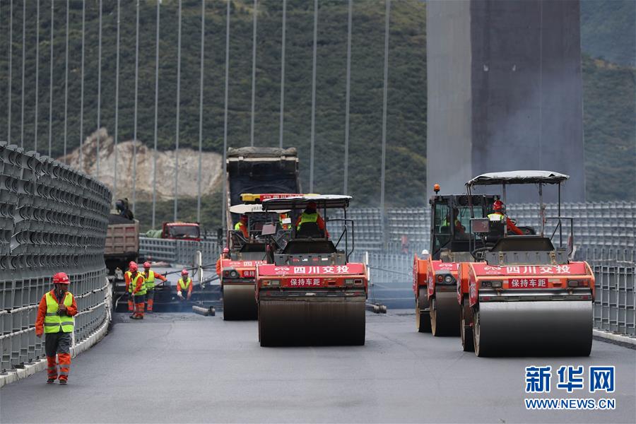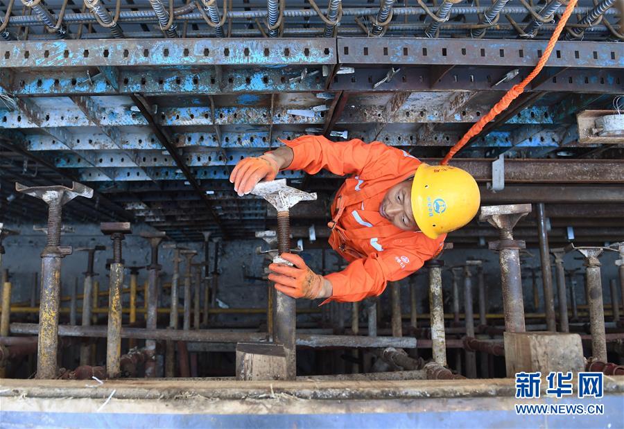 10月1日,建筑工人在雅康高速瀘定大渡河興康特大橋施工現(xiàn)場作業(yè)。當(dāng)日是國慶節(jié),許多勞動者堅守在工作一線,在崗位上度過節(jié)日。新華社記者江宏景攝