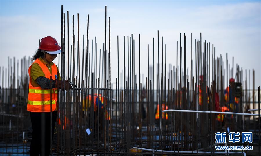 10月1日,中建三局三公司建筑工人在南京世茂外灘新城項目現(xiàn)場施工。當(dāng)日是國慶節(jié),許多勞動者堅守在工作一線,在崗位上度過節(jié)日。新華社記者李響攝