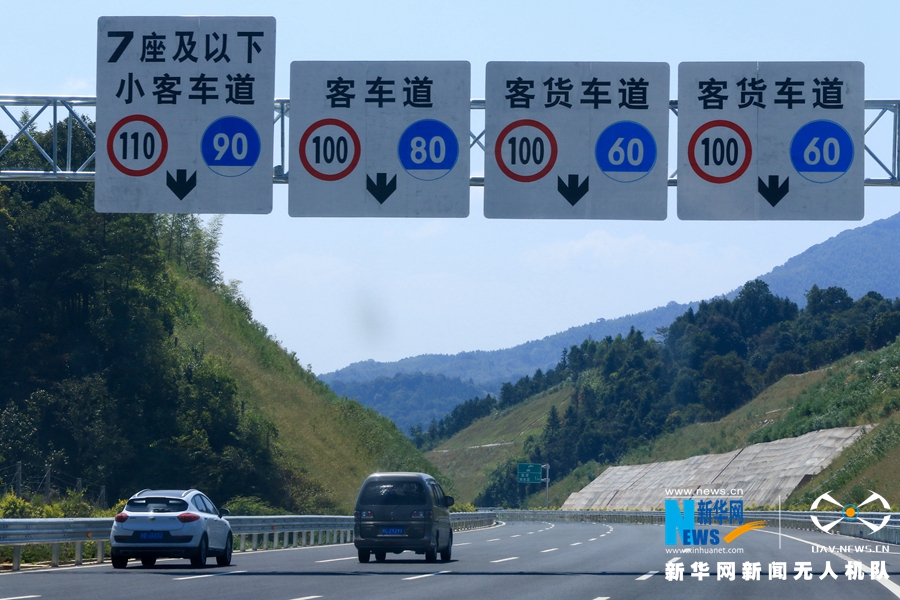 這是廈蓉高速長下坡龍巖路段的道路景觀(無人機(jī)拍攝)。新華網(wǎng) 肖和勇 攝
