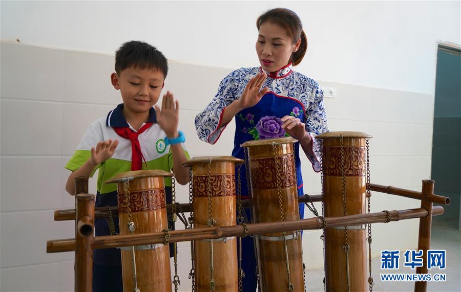 10月8日,崇義縣竹樂樂團的演員在教學(xué)生演奏竹板琴。 近年來,江西省崇義縣思源實驗學(xué)校定期開設(shè)竹樂課,邀請崇義縣竹樂樂團的演員教授學(xué)生演奏竹排琴、竹板琴等竹樂樂器,激發(fā)學(xué)生了解傳統(tǒng)文化的熱情。 新華社記者胡晨歡攝