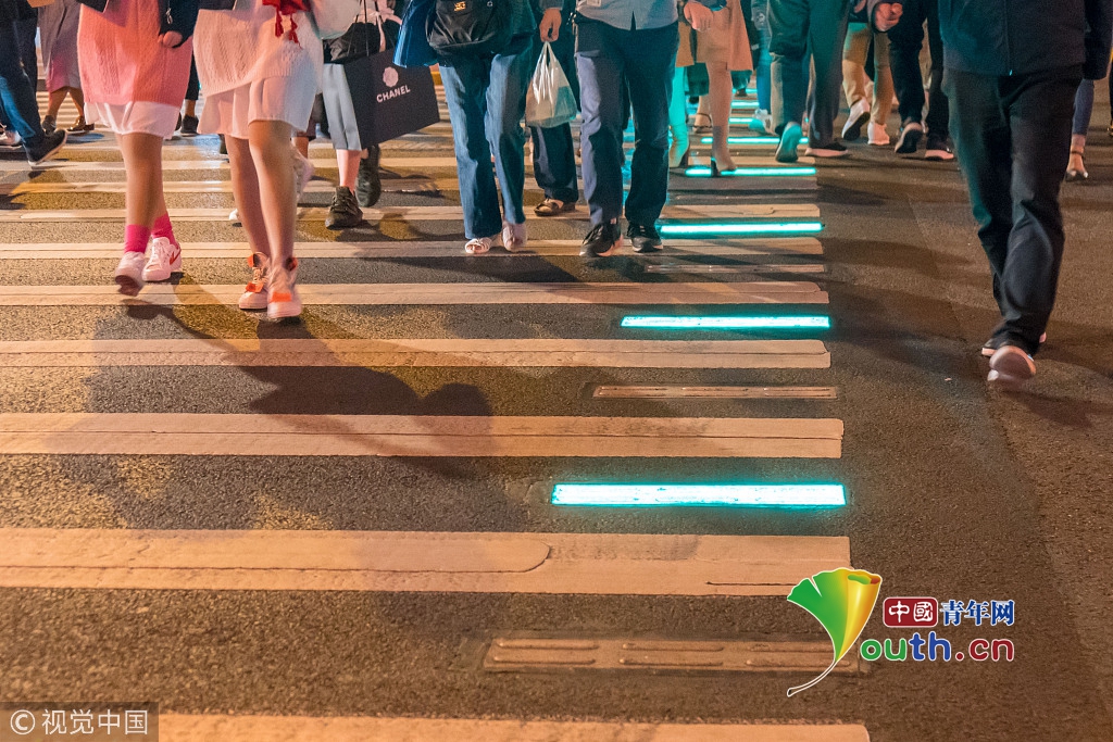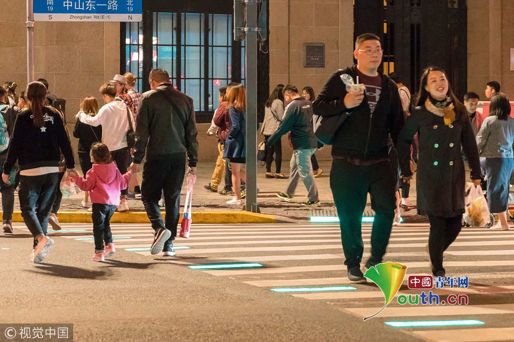 2018年10月10日,上海首條會發(fā)光人行道十一期間在外灘投入使用。