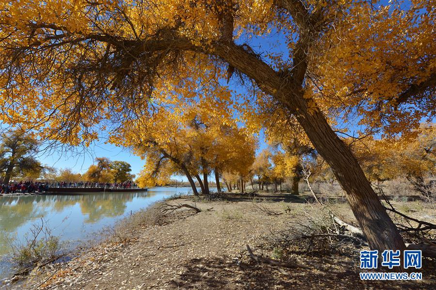 這是在內(nèi)蒙古自治區(qū)額濟(jì)納旗拍攝的胡楊林(10月10日攝)。 金秋時(shí)節(jié),內(nèi)蒙古自治區(qū)額濟(jì)納旗胡楊林如同披上金裝,成為大漠中的一抹亮色,吸引眾多中外游客前來(lái)觀賞游玩。 新華社記者鄒予攝