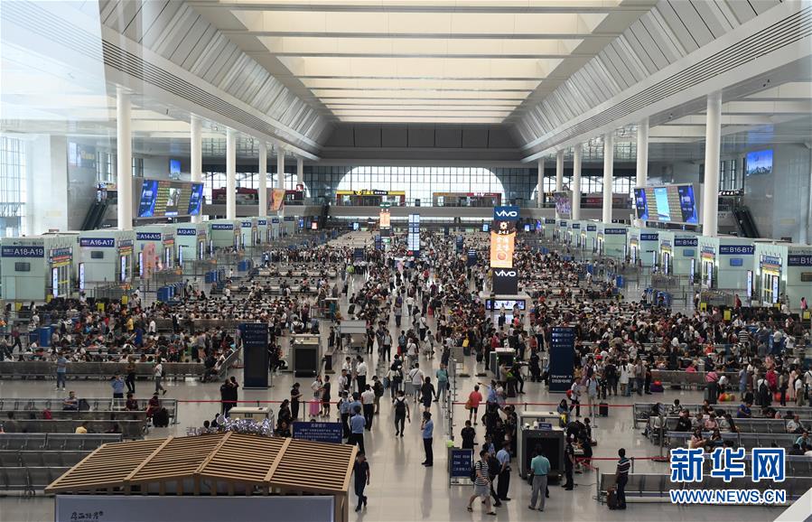 在廣西南寧東站,旅客在排隊候車,準備出行(9月4日攝)。 廣西壯族自治區(qū)成立60年來,鐵路建設(shè)發(fā)生翻天覆地的變化。來自中國鐵路南寧局集團有限公司的數(shù)據(jù)顯示,1958年廣西鐵路總里程為1346.3公里,如今廣西鐵路總里程達5191公里。廣西與周邊相鄰省份間實現(xiàn)動車“公交化”開行。此外,北部灣港—重慶班列、東盟海產(chǎn)品冷鏈班列、“百色一號”果蔬專列等的開通和運營,強化了鐵路供給的針對性和有效性。鐵路成為助推廣西經(jīng)濟社會快速發(fā)展的“大動脈”。 新華社記者陸波岸攝
