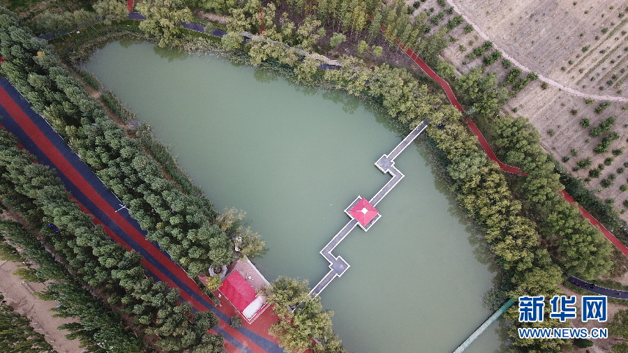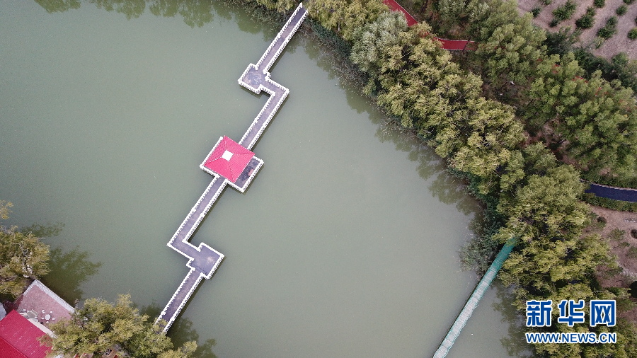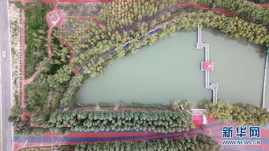 恩格貝生態(tài)示范區(qū)位于庫(kù)布齊沙漠中段,總面積200平方公里。這里曾經(jīng)風(fēng)沙肆虐,恩格貝生態(tài)示范區(qū)建設(shè)者經(jīng)過長(zhǎng)期艱苦奮斗,用雙手和鐵鍬“種”出一片人造沙漠綠洲,在沙漠里打造了一顆璀璨的生態(tài)明珠,如今這里是國(guó)家生態(tài)旅游示范區(qū)和國(guó)家4A級(jí)景區(qū)。月亮湖位于恩格貝生態(tài)示范區(qū)核心區(qū)域,周圍被綠色植被環(huán)繞,在無(wú)人機(jī)航拍視角下,猶如鑲嵌在沙漠綠洲里的一塊碧玉,呈現(xiàn)出大自然的和諧之美。(新華網(wǎng) 王宇 攝)