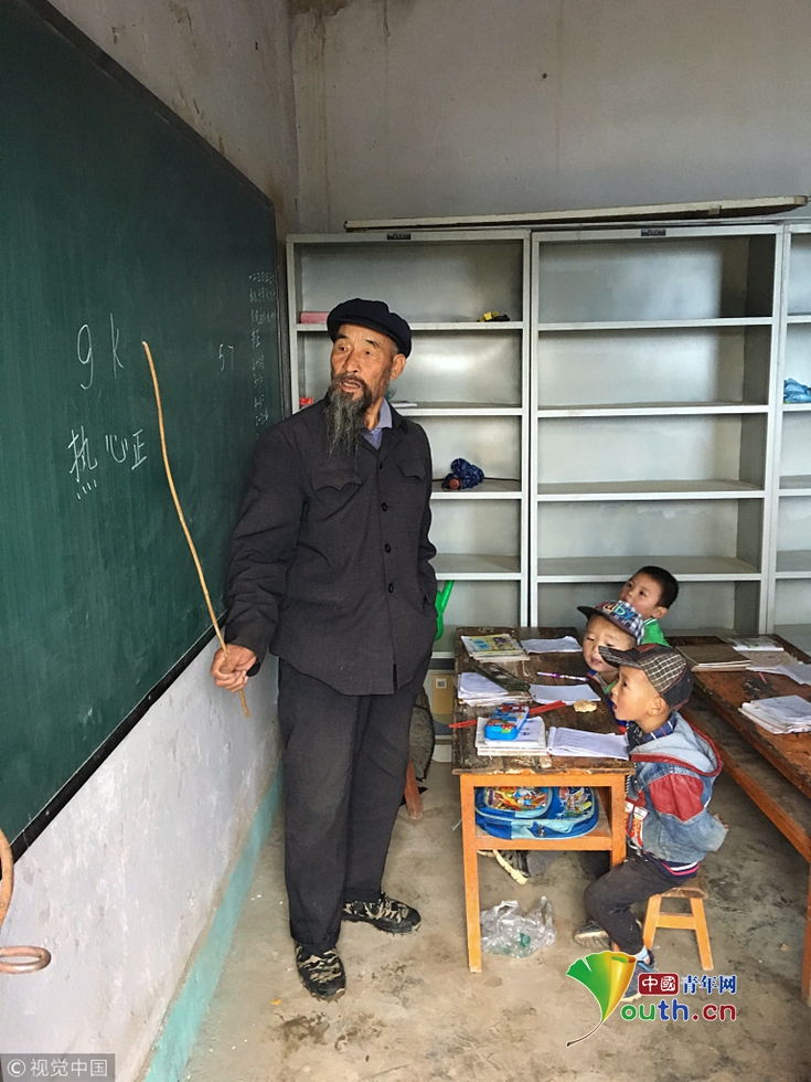 2017年9月26日,甘肅省武山縣樺林鎮(zhèn),有一個(gè)住著80多戶人家的小山村,叫柒坪村。村里有個(gè)沒有名字的幼兒園,里面有16個(gè)可愛的孩子。這個(gè)幼兒園的老師,不是女老師,更不是年輕人,是一位男老師,是一位75歲的老教師,他叫高世榮。圖片作者:一平/視覺中國(guó)