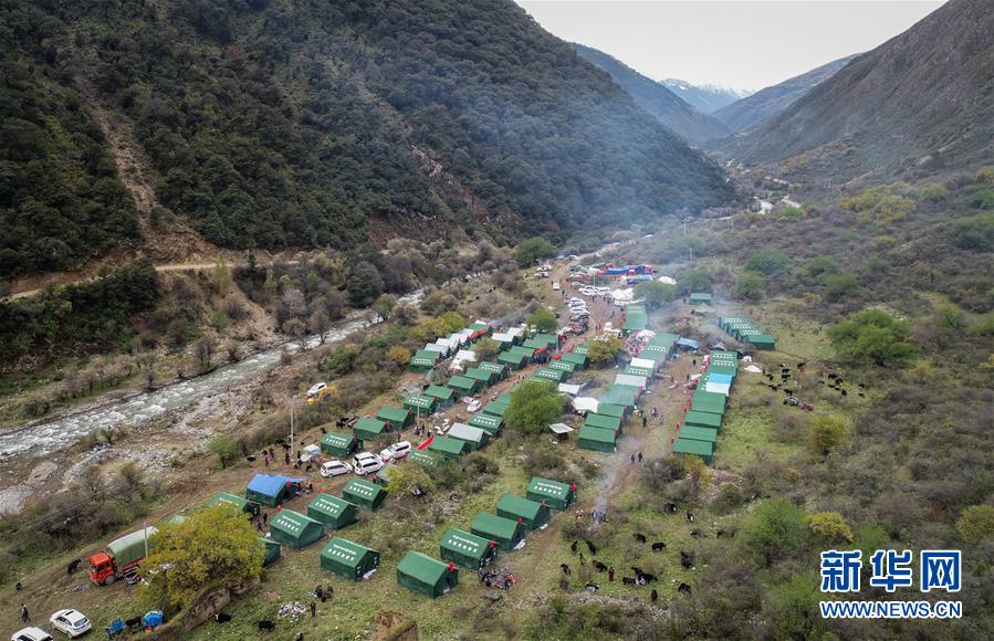 10月19日拍攝的在米林縣派鎮(zhèn)達(dá)林村搭建的安置點(diǎn)。 記者從西藏自治區(qū)林芝加拉村雅魯藏布江堰塞湖災(zāi)情應(yīng)急搶險(xiǎn)工作第二場新聞發(fā)布會(huì)上獲悉,19日13時(shí)30分,雅魯藏布江米林縣堰塞體上游水位超過堰塞體,開始自然過流,上游水位正在緩慢下降。目前,各項(xiàng)搶險(xiǎn)救援工作正在有序開展。 新華社記者 普布扎西 攝