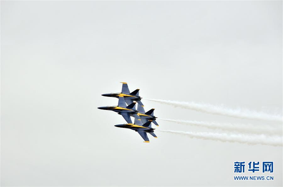 10月20日,在美國(guó)休斯敦,美國(guó)海軍“藍(lán)天使”飛行表演隊(duì)進(jìn)行飛行表演。 新華社記者劉立偉攝